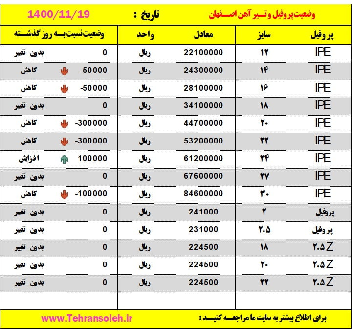 قیمت روز ورق ،تیر آهن و پروفیل دیدگاه خود را بنویسید / قیمت روز ورق و مقاطع, قیمت سوله 1400 / تولید کننده جرثقیل سقفی تهران / 18 بهمن 1400 قیمت روز ورق ،تیر آهن و پروفیل بیشتر بخوانید »
