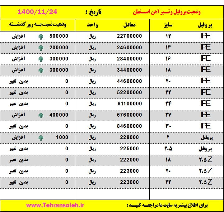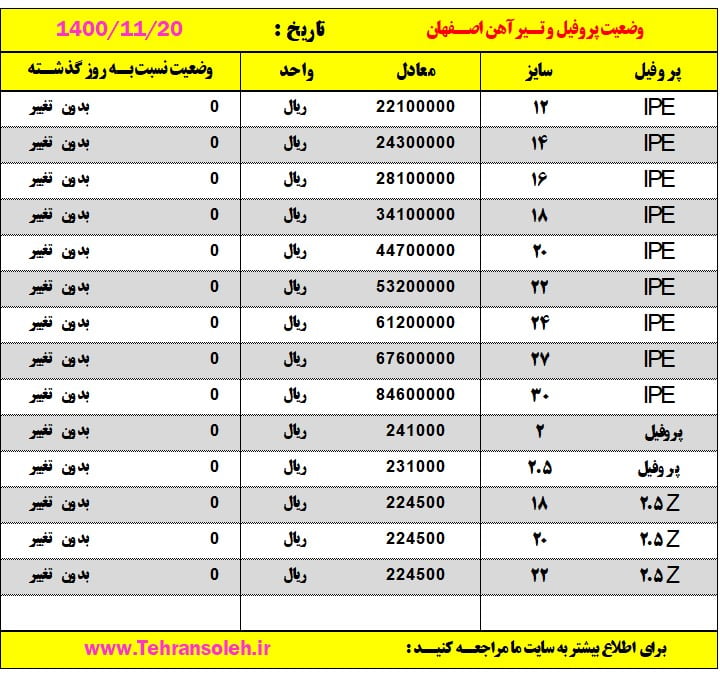 قیمت روز ورق ،تیرآهن و پروفیل دیدگاه خود را بنویسید / قیمت روز ورق و مقاطع, قیمت سوله 1400, قیمت سوله سازی / تولید کننده جرثقیل سقفی تهران / 16 بهمن 1400 قیمت روز ورق ،تیرآهن و پروفیل بیشتر بخوانید »