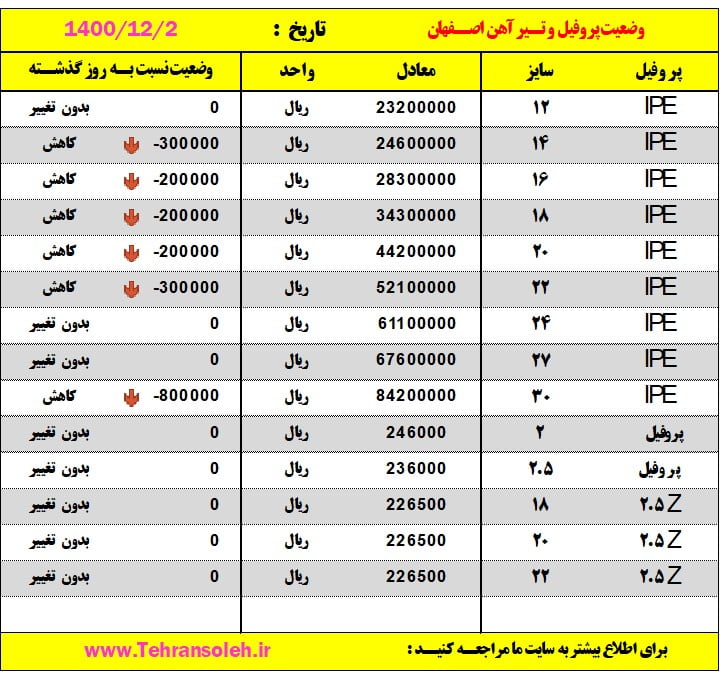قیمت روز ورق ،تیرآهن و پروفیل دیدگاه خود را بنویسید / قیمت روز ورق و مقاطع, قیمت سوله 1400, قیمت سوله سازی / تولید کننده جرثقیل سقفی تهران / 13 بهمن 1400 قیمت روز ورق ،تیرآهن و پروفیل بیشتر بخوانید »